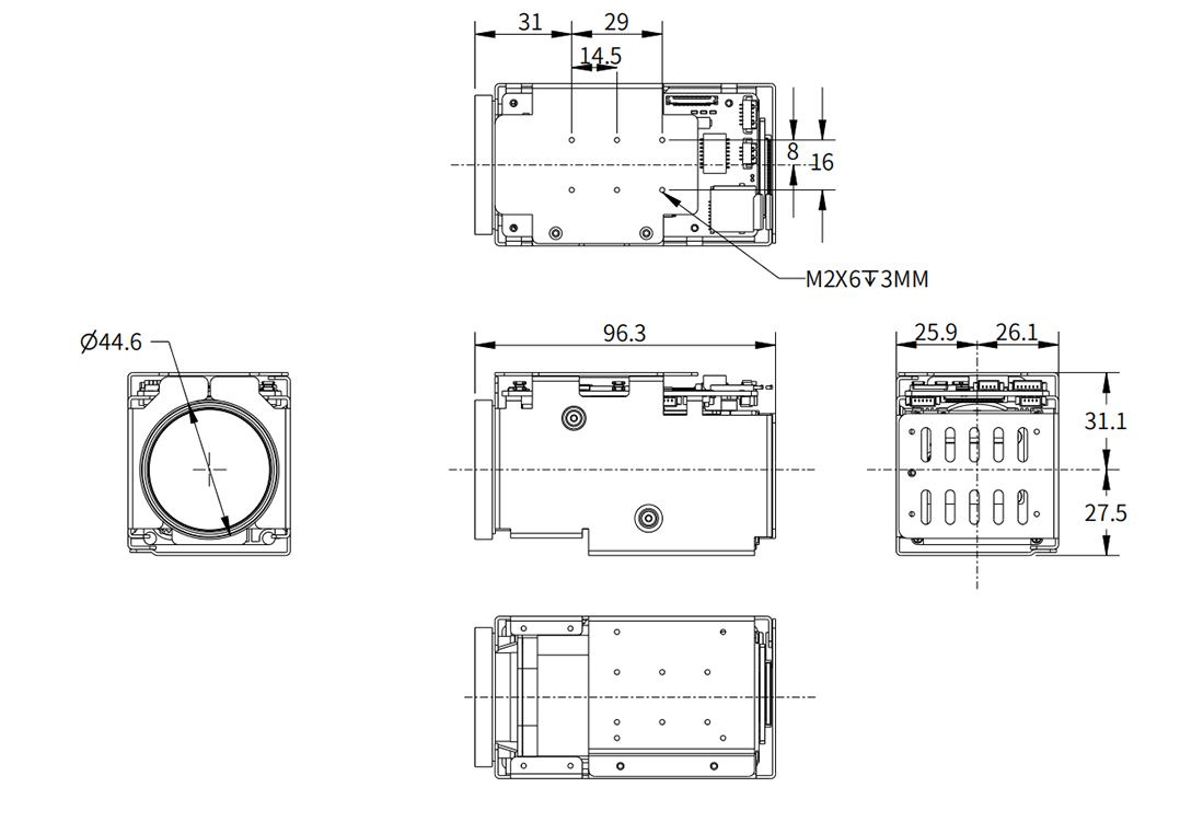 H: 57.15 ° ~ 1,96 °, V: 44.44 ° ~ 1.17 °, D: 68.50 ° ~ 2,44 ° |